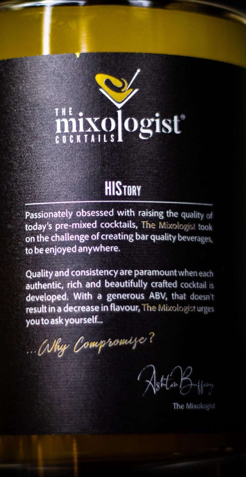 About the Business The Mixologist is the passion project of Ashton, a drinks expert with over 20 years of experience in the industry. The concept is simple but effective: bar-quality cocktails, pre-mixed at high strength (19% ABV), ready to pour. From the popular Crimson Crush to the rich Guinness Punch, these aren't your standard supermarket mixers; they are crafted with the care you’d expect from a high-end bar, designed for people to enjoy at home or for venues that want to serve great drinks without the complex prep time.